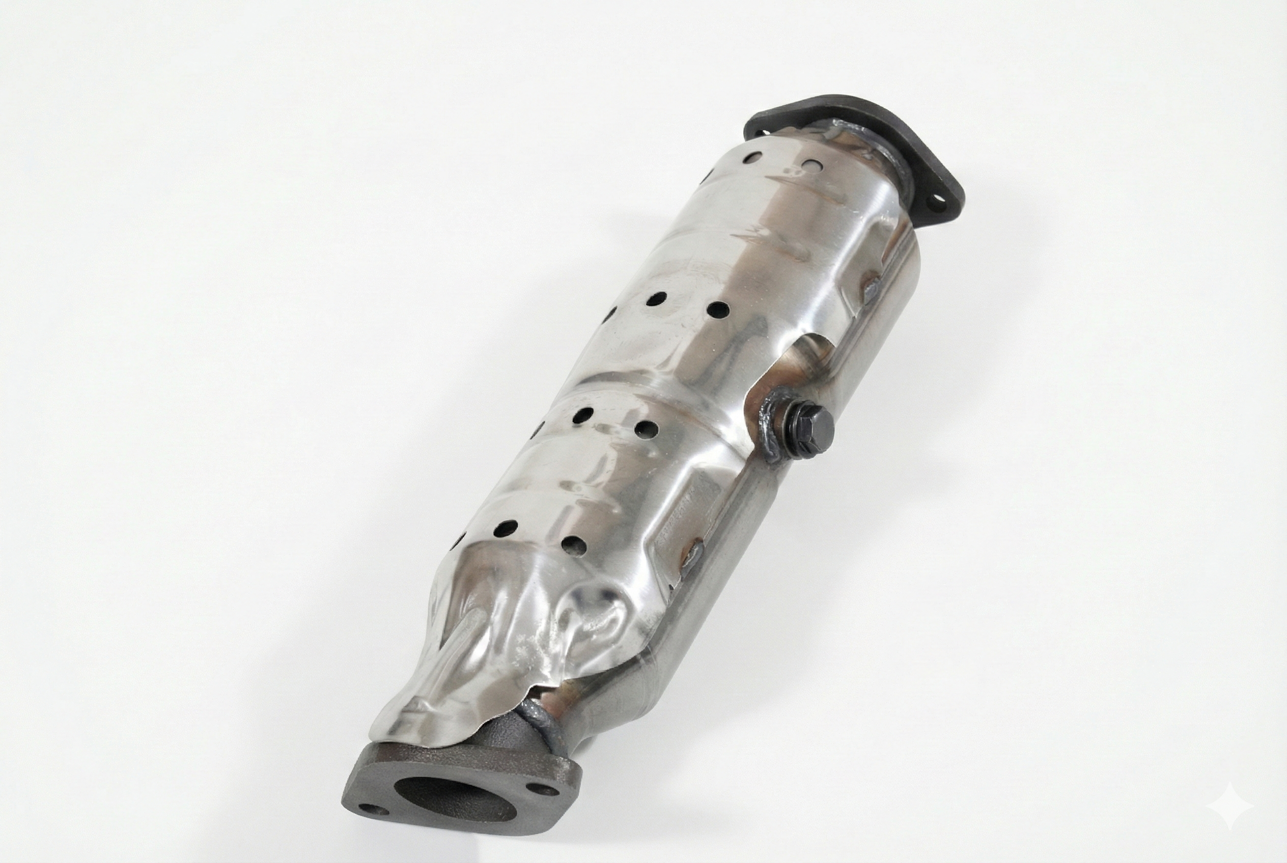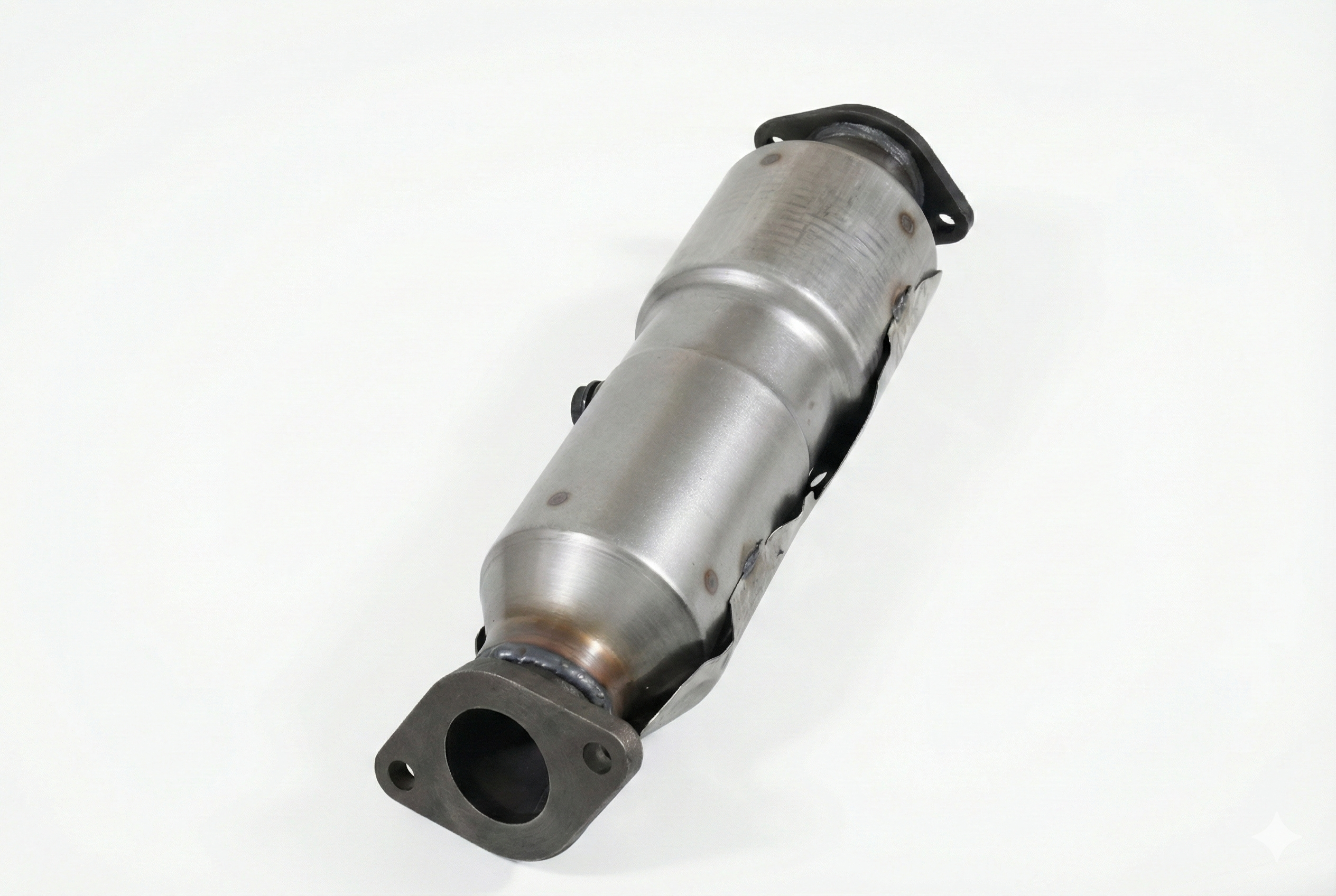 Универсальный металлический катализатор. Длина 415 мм, вход/выход ф 57мм. Плоский....