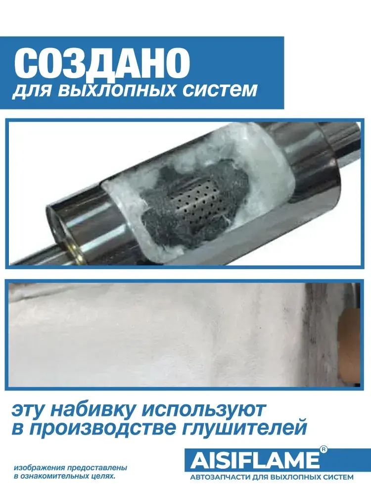Набивка для глушителя и выхлопных систем AISIFLAME используется в выхлопных системах легковых автомобилей для защиты абсорбирующего материала от продувки через отверстия в трубах.